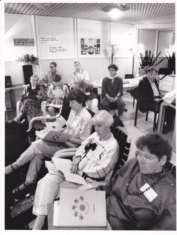 Kuva Kajaanin kirjastopäivien eräästä ryhmäkokouksesta 1991.